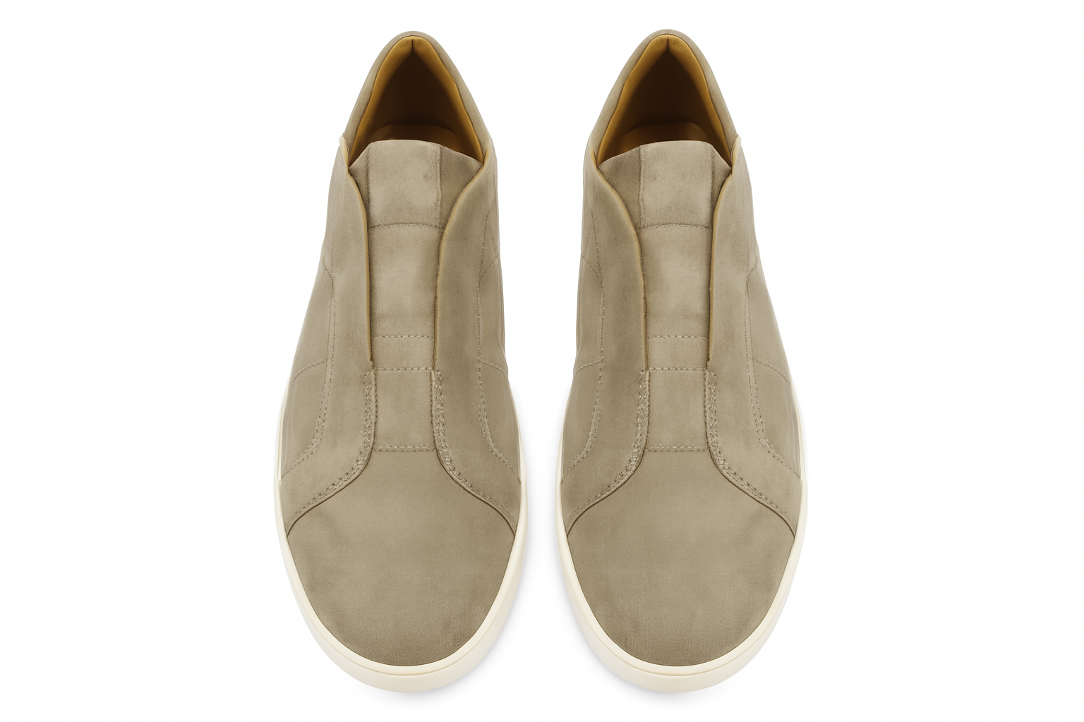 Sneakers senza lacci di crosta rovesciato, sabbia Elastico sotto linguetta da Poter indossare come Mocassino fodera in vitello cuoio Plantare memory estraibile, Suola leggera di colore Off White